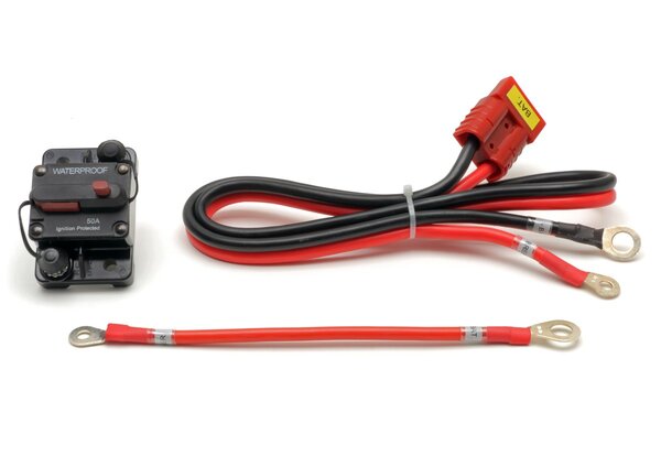 Use this 10 AWG Battery Power Cable Assembly + 100A Breaker if you plan to power your boat lift motor from your boat battery: Simply connect to your boat battery and run the extension cable through your boat side walls near a side well. Use the matching connector to attach to your motor and power your DC boat lift blower motor. This is a replacement battery power assembly for our exclusive DC Boat Lift Blower Motor System.