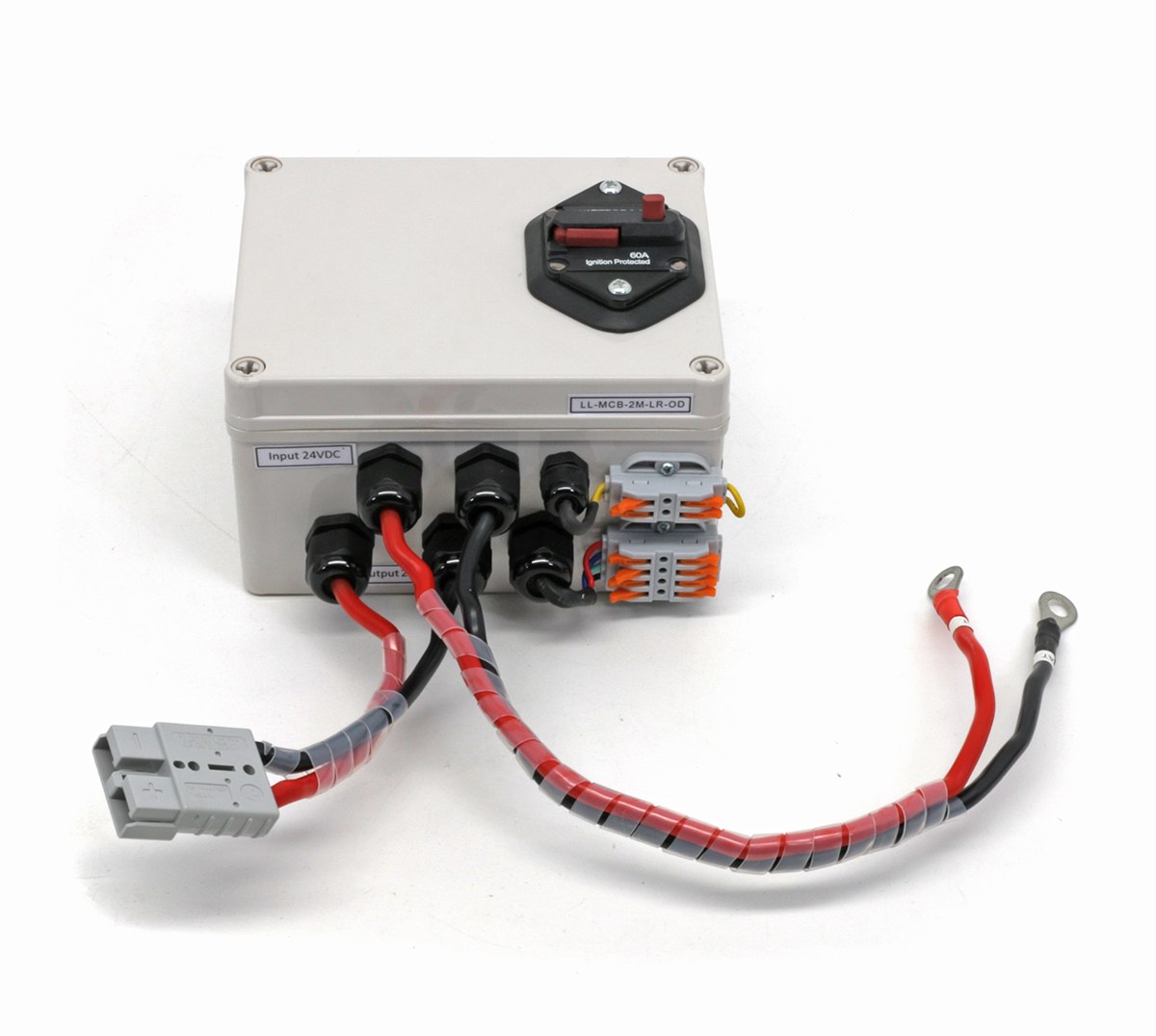 BATTERY POWERED: The C-Face Motor Kit operates on safe DC-24v power. Two 12v deep cycle batteries are combined in series to create 24v. – Batteries Not Included. A breaker fuse protects the system from any failure or overload. The breaker fuse is easily reset and does not require changing a fuse. The breaker fuse is installed in the lockable battery box and offers a convenient way to disconnect power preventing the boat lift from being operated.