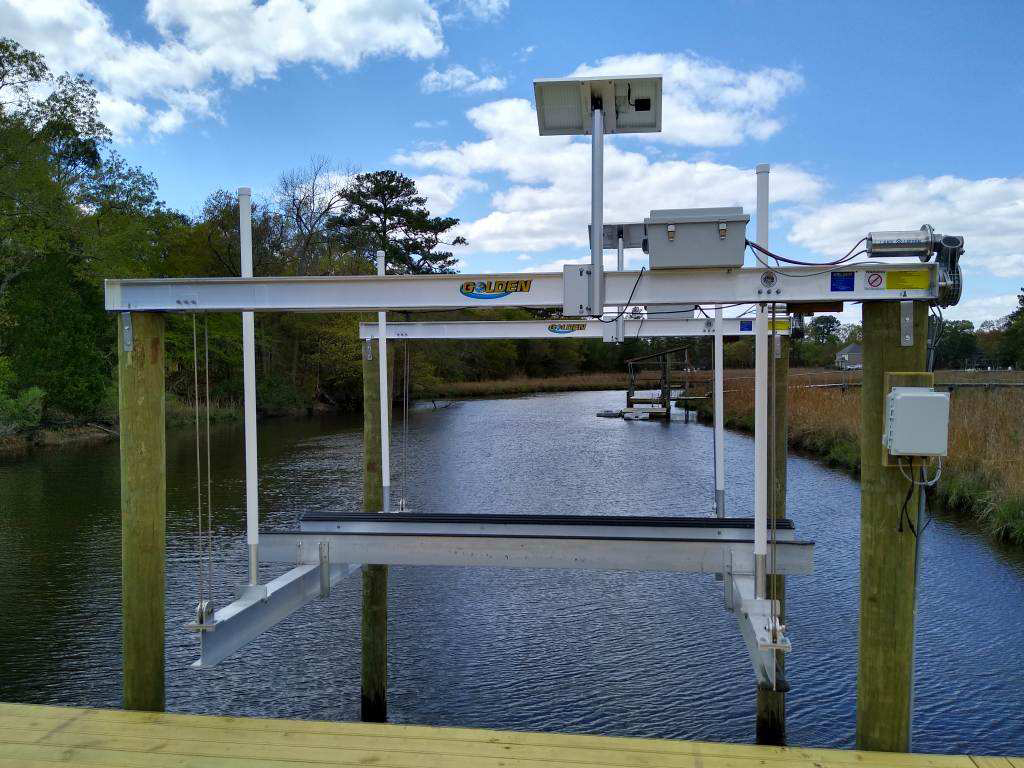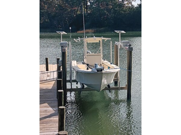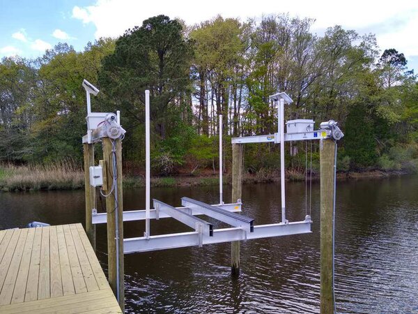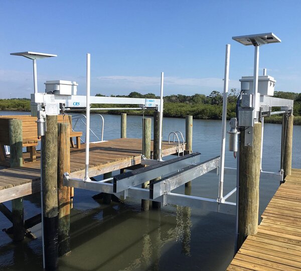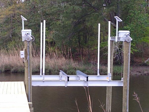 BOAT LIFT SOLAR CHARGING KIT: To prevent the batteries from being depleted you will need one of our Boat Lift Solar Charging Kits to recharge the batteries between uses. This kit includeds two 20w-24v Solar Panels, 2 solar charge regulators, mounting hardware and wiring. The Dual DC Boat Hoist Motor + 40w-24v Solar Charging Kit  offers everything needed to quickly convert your A-drive/E-Gear boat hoist to SAFE, RELIABLE, DC POWER.