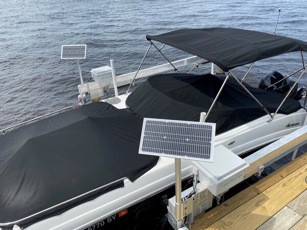 Keep your boat lift battery in top condition and ready to use at any time with Lake Lifter's 40w-24v Boat Hoist Solar Charging Kit. Our more advanced charging kit, the 40w-24v Boat Hoist Solar Charging Kit (two 20w-24v Solar Panels) is the perfect charge for 24v DC boat lift systems using two 12v batteries. The added power of Lake Lifter's Boat Lift Charging Kit ensures better performance even on cloudy days allowing for higher useage. Our high quality solar panel will keep your boat lift battery in top condition so the DC lift motor has the power to raise and lower your boat. Illustrated instructions ensure fast and simple installation plus we offer a video for additional reference.