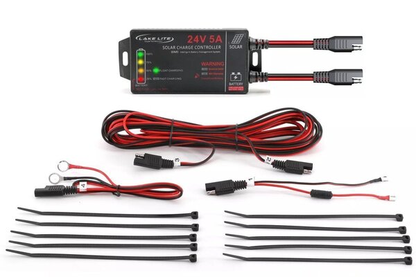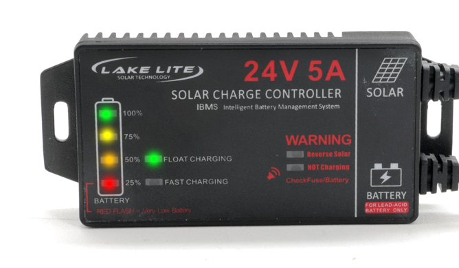 Lake Lifter's HD Solar Charge Regulator is new and improved in 2020. This innovative HD 24v Solar Charge Regulator offers NEW features and more protection. Includes a LED Charging Status, Reverse Solar Status, Overcharge Protection, Micro Processor Control, IP 65 Sealed Electronics, Blown Fuse Alarm and LED, and IBMS Technology – (Intelligent Battery Management System). This is NOT your standard regulator, rather, an advanced micro-processor is programmed to intelligently monitor the battery condition up to 100%, unlike standard regulators at 55-60%. This feature results in a FULL charge and conditioning of the battery.