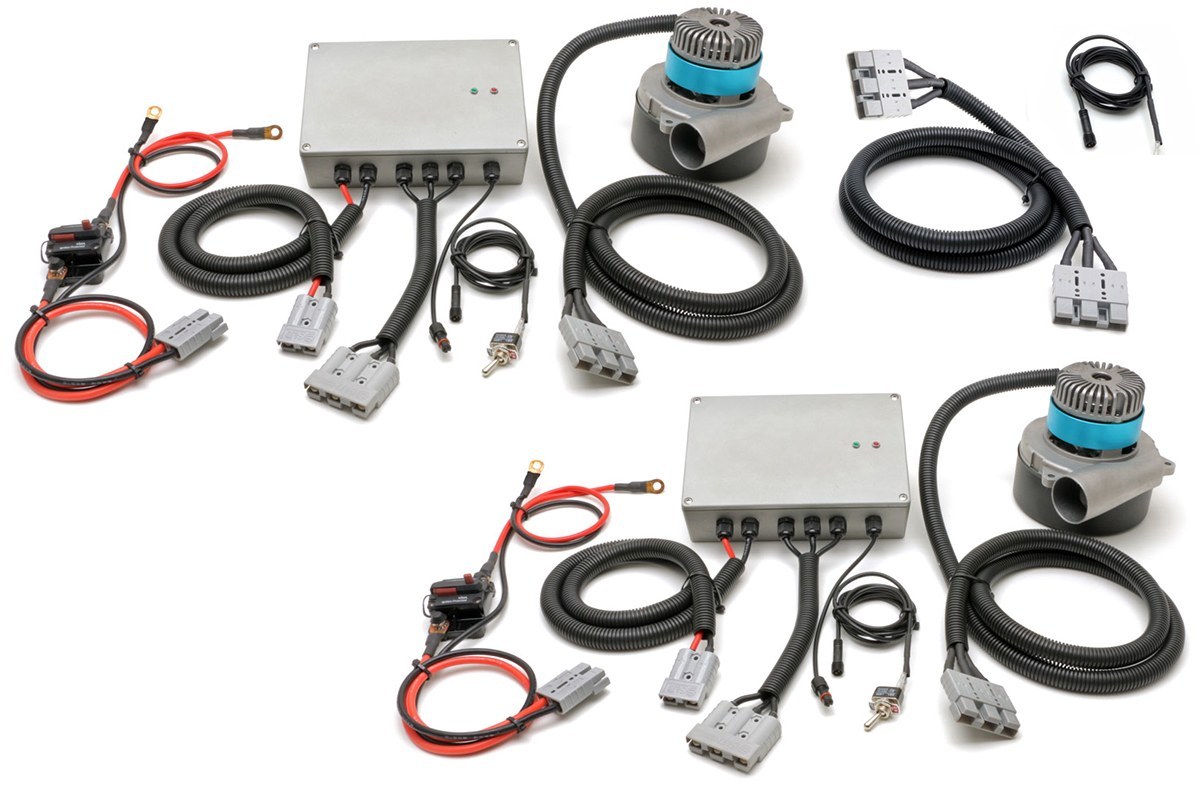 BATTERY POWERED: The DC Blower Motor System operates on safe DC 24v power. Two 12 volt deep cycle marine batteries are connected in series to create 24v. (Batteries Not Included)  A fuse breaker protects the system from any failure or overload. The fuse breaker is installed in the lockable battery box and offers a safe and convenient system for disconnecting the power when not being operated.