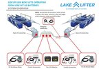 BLOWER MOTOR: Lake Lifter’s marine grade 24 volt DC blower motor is a 1500 watt brushless blower motor that is safer and faster than traditional high voltage AC motors. Safe 24 volt DC power eliminates electrical shock hazards, electrical runs, and voltage loss problems around the dock.  In addition, the Lake Lifter blower motor lifts boats faster than traditional electrical motors.