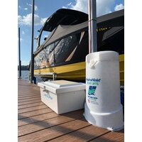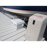 BATTERY BOX: (Recommended):  Lake Lifter's durable Fiberglass Battery Box houses two batteries, motor control box, breaker fuse, and wiring. The fiberglass battery box includes a lockable latch that keeps the system components safe and secure.