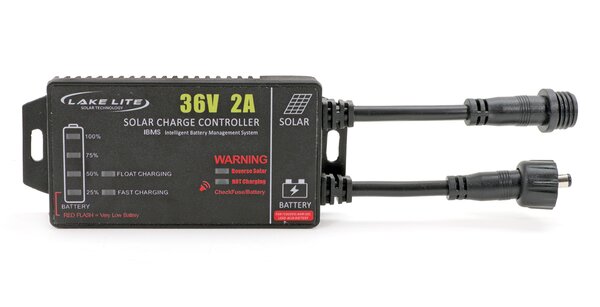 Lake Lifter's HD Solar Charge Regulator is new and improved in 2020. This innovative HD 36v Solar Charge Regulator offers NEW features and more protection.  Includes a LED Charging Status, Reverse Solar Status, Overcharge Protection, Micro Processor Control, IP 65 Sealed Electronics, Blown Fuse Alarm and LED, and IBMS Technology – (Intelligent Battery Management System). This is NOT your standard regulator, rather, an advanced micro-processor is programmed to intelligently monitor the battery condition up to 100%, unlike standard regulators at 55-60%. This feature results in a FULL charge and conditioning of the battery.