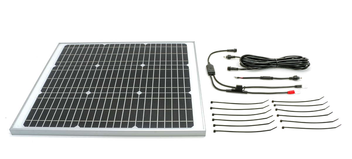 This simple, easy-to-use Solar Panel Charging Kit isthe perfect solution to keeping your batteries fully charged. Waterproof connect system, in-line diode system and in-line fuse protects your battery from discharge, while also preventing panel damage in the event of inadvertent wiring. This fail-safe wiring kit provides confidence and ease of installation.