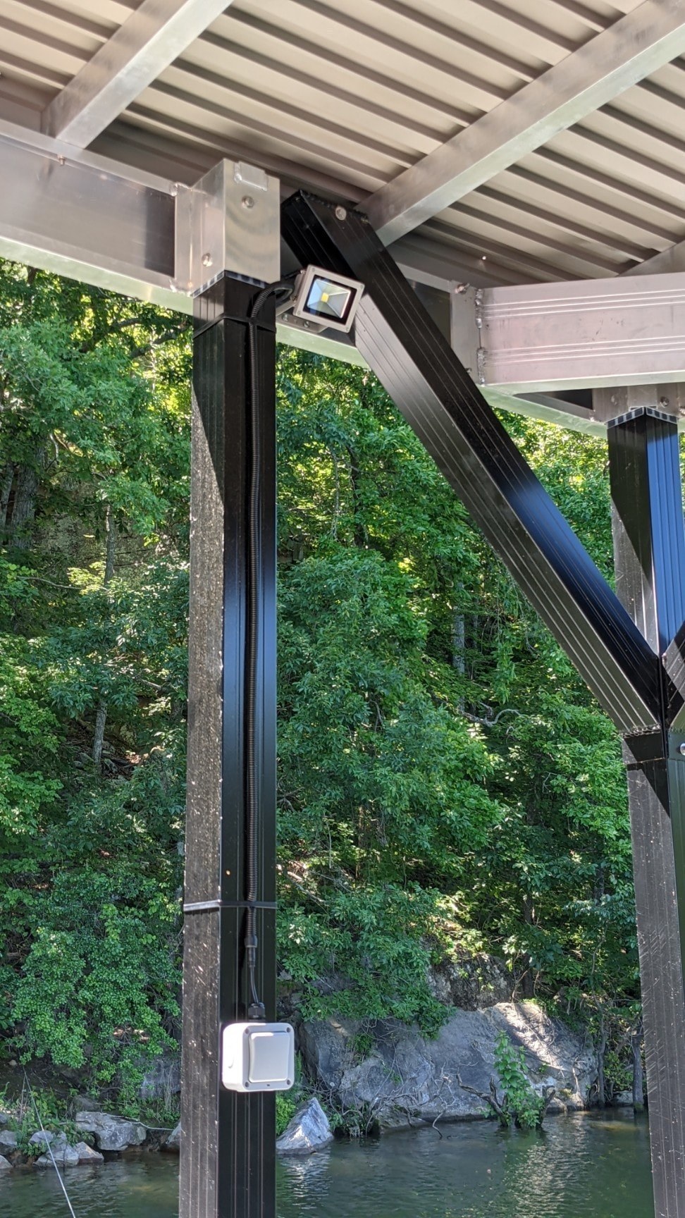 The Boat House Flood Light is a great way to light up your boat house for those evening boat rides. The Lake Lifter water-proof Boat House Flood Light is designed to attach to any boat house structure and provide more than ample lighting for safe loading and unloading. Simple and waterproof connection to DC Boat Lift motors equipped with 12v DC light output such as Lake Lifter's Wireless Flat Plate Motor System or Wireless C-Face Motor System.