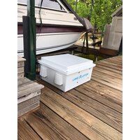 FIBERGLASS BOX:  Lake Lifter's durable Fiberglass Box houses everything inside a compact 18x16x10 inch package saving precious dock and walkway space. No longer will you need both a valve control box + separate battery box. With our All-IN-ONE blower motor control box, you only have one compact box on the dock!