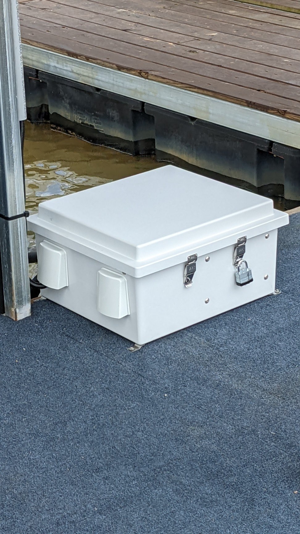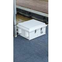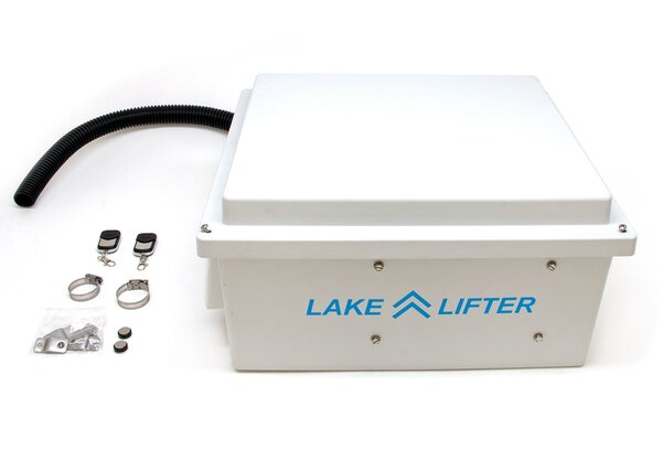 FIBERGLASS BOX:  Lake Lifter's durable Fiberglass Box houses everything inside a compact 18x16x10 inch package saving precious dock and walkway space. No longer will you need both a valve control box + separate battery box. With our All-IN-ONE blower motor control box, you only have one compact box on the dock!