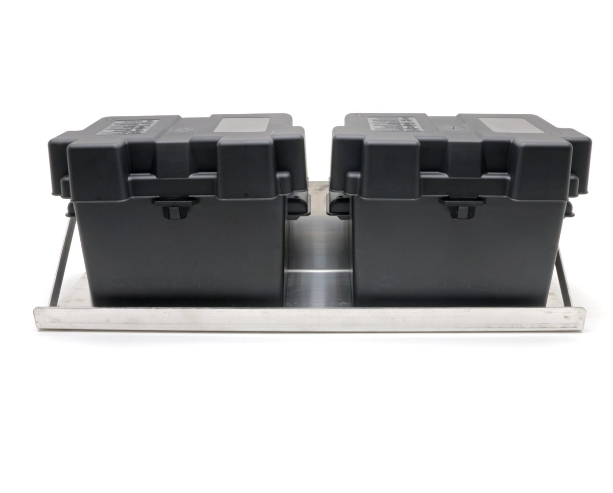 The Dual Hanging Tray keeps your battery high and out of the way. Along with the Dual Hanging Boat Lift Battery Tray, we recommend using a protective plastic battery enclosures (not-included) to help protect battery from the weather.