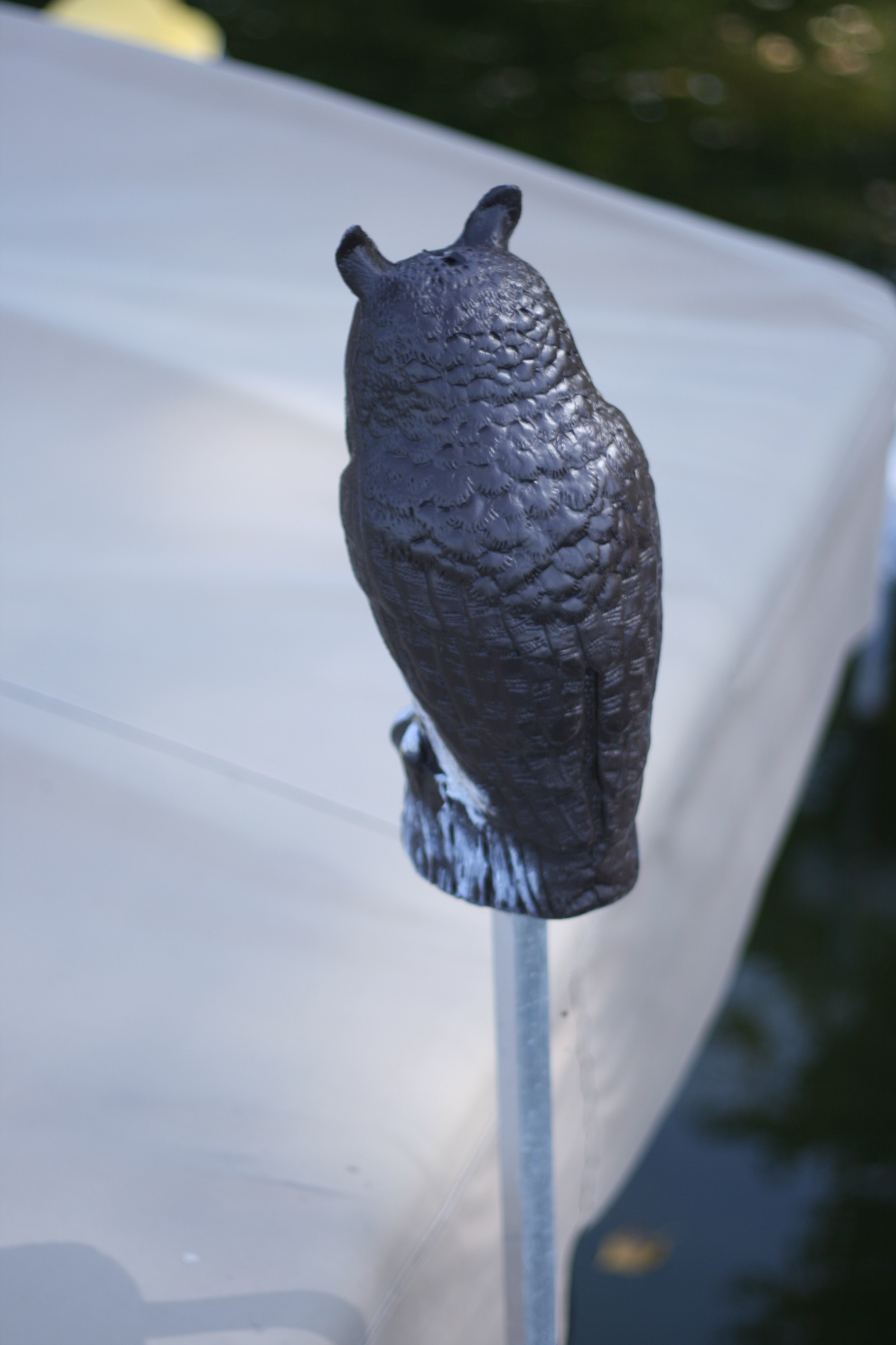 Lake Lifter's Boat Lift Great Horned Owl Scare Kit for Boat Lift helps to keep those annoying birds from perching on your canopy. Since owls are a predatory bird, an owl decoy is often used as a deterrent to other birds of prey. The Great Horned Owl Scare Kit for Boat Lift is the perfect way to keep your canopy looking clean all summer long!
