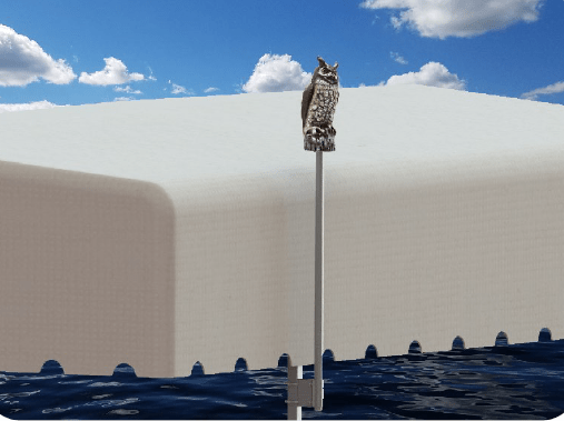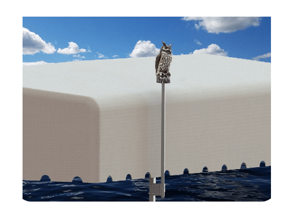 The Great Horned Owl Scare Kit mounts to all brand of boat lifts in minutes and is a simple & cost effective solution to keep your canopy clean.
