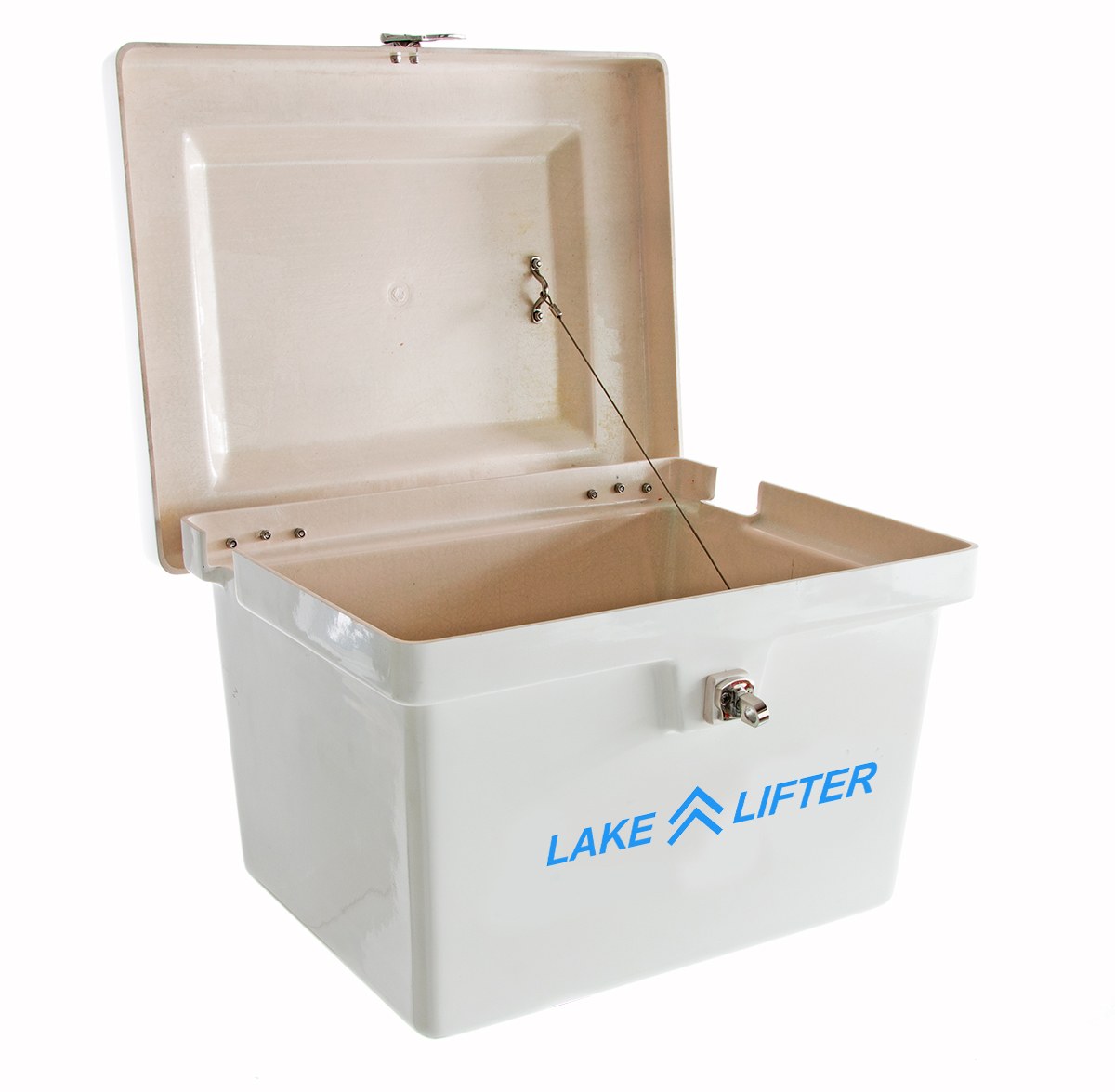 Perfect for housing all power management accessories for Blower Motor Systems, C-Face Gear Box Motor Systems, and Flat Plat Motor Systems. Lake Lifter's Fiberglass Battery Box delivers a clean look and safe keeping for cords, batteries and the control box. The Boat Lift Fiberglass Battery Box has a lockable latch to keep all equipment safe and secure.