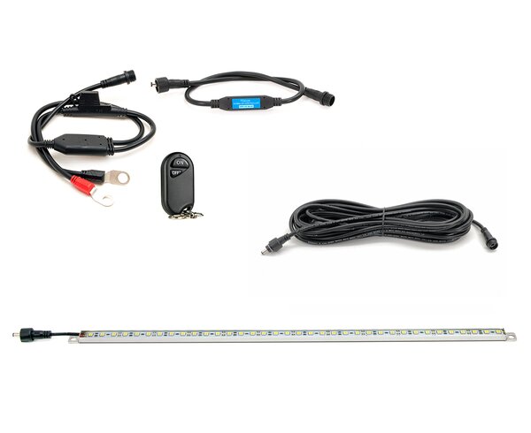 The Wireless Boat Lift LED Light Bar is a great way to light up your boat lift area for those evening boat rides. The Lake Lifter waterproof and sturdy Wireless Boat Lift LED Light Bar is designed to attach to any flat surface near a boat lift. The Boat Lift LED Light Bar is 0.5 meters long (19.7 inches). Simple and quick connection to AC or DC Boat Lift motors equipped with 12v DC light output.